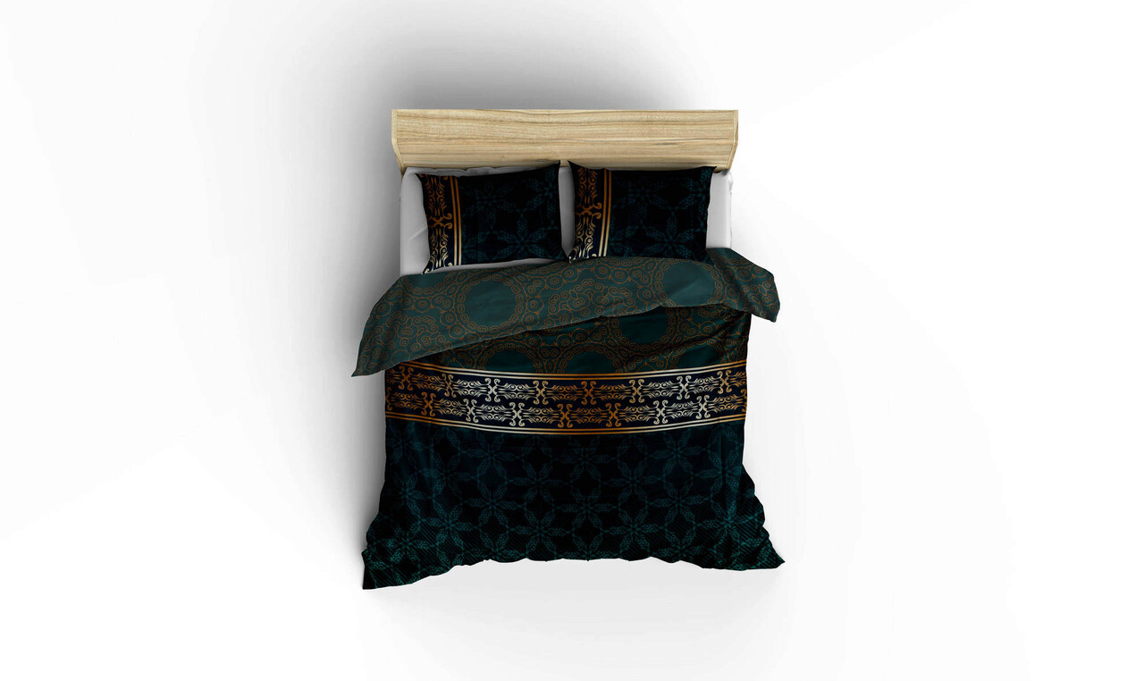 Lenjerie de pat pentru o persoana (EU) (IT), L'essentiel Maison, Alisa, Verde închis / Muștar / Maro