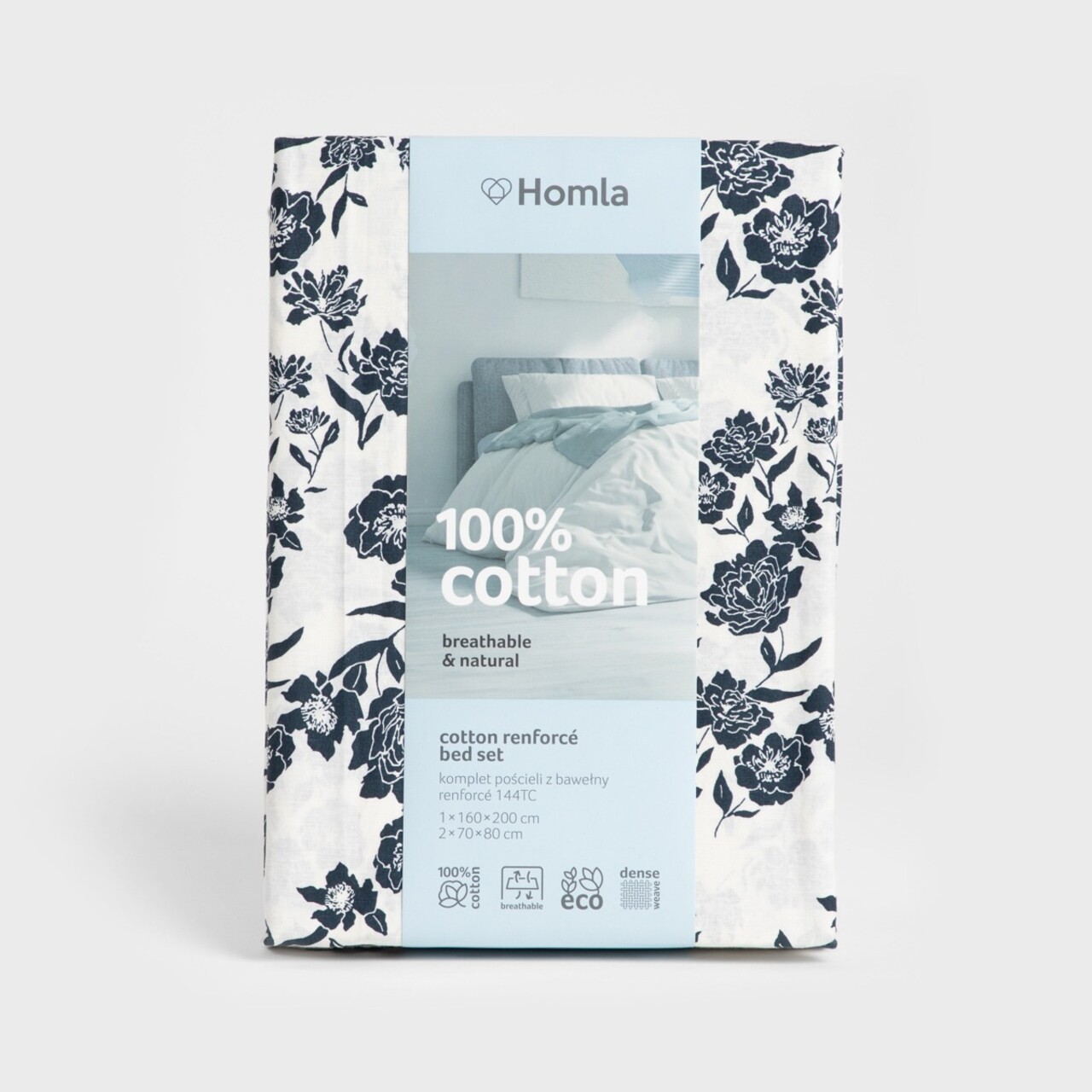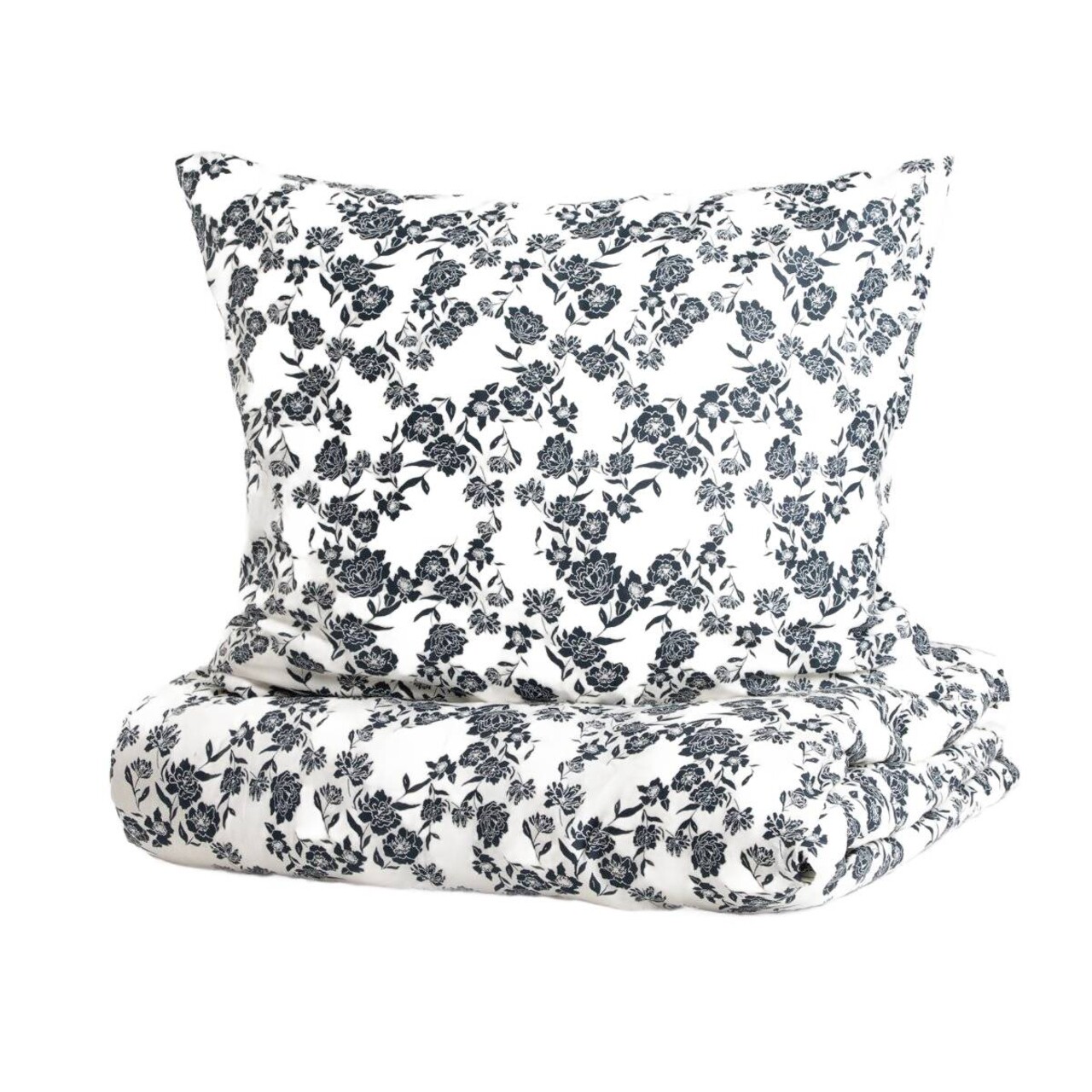 Lenjerie de pat pentru o persoana Floral Hamptons, Homla, 2 piese, 140x200 cm, bumbac, alb/negru