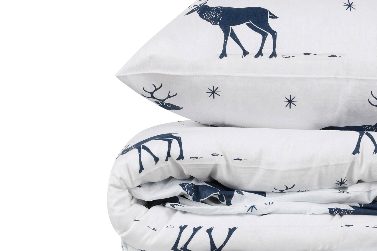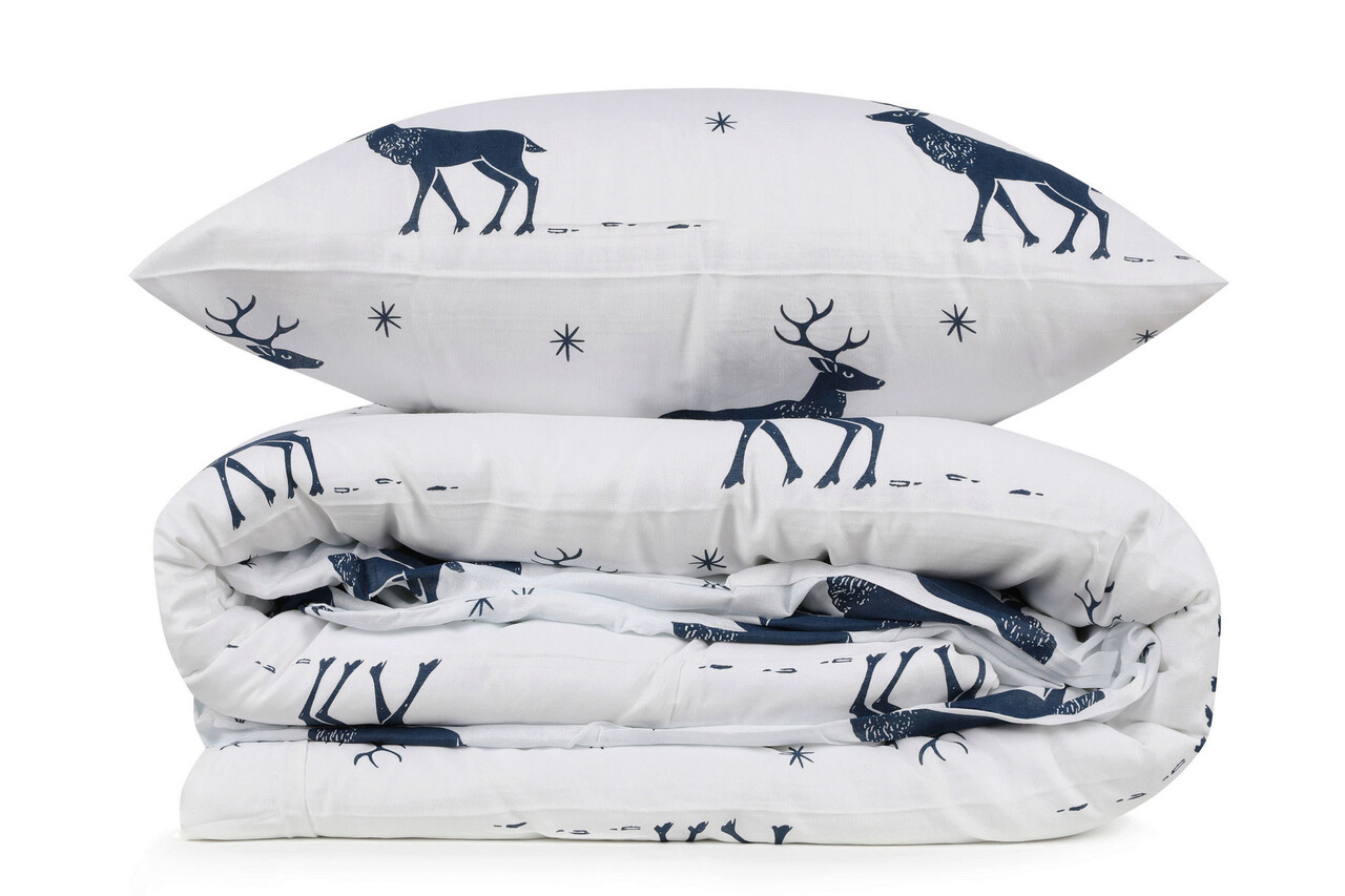 Lenjerie de pat pentru o persoana (FR), 2 piese, Geyik - Dark Blue, Eponj Home, 65% bumbac/35% poliester
