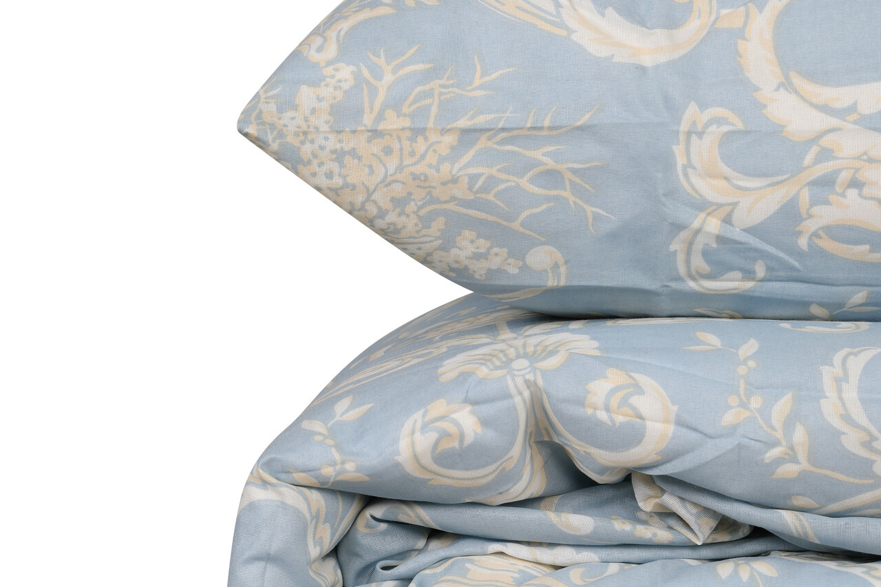 Lenjerie de pat pentru o persoana (FR), 2 piese, L'essentiel Maison, Tuval, Albastru / Crem