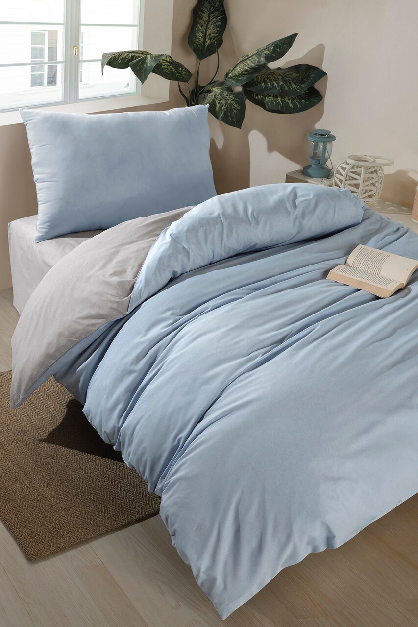 Lenjerie de pat pentru o persoana (FR), 2 piese, L'essentiel Maison, Solid, Albastru deschis / Gri