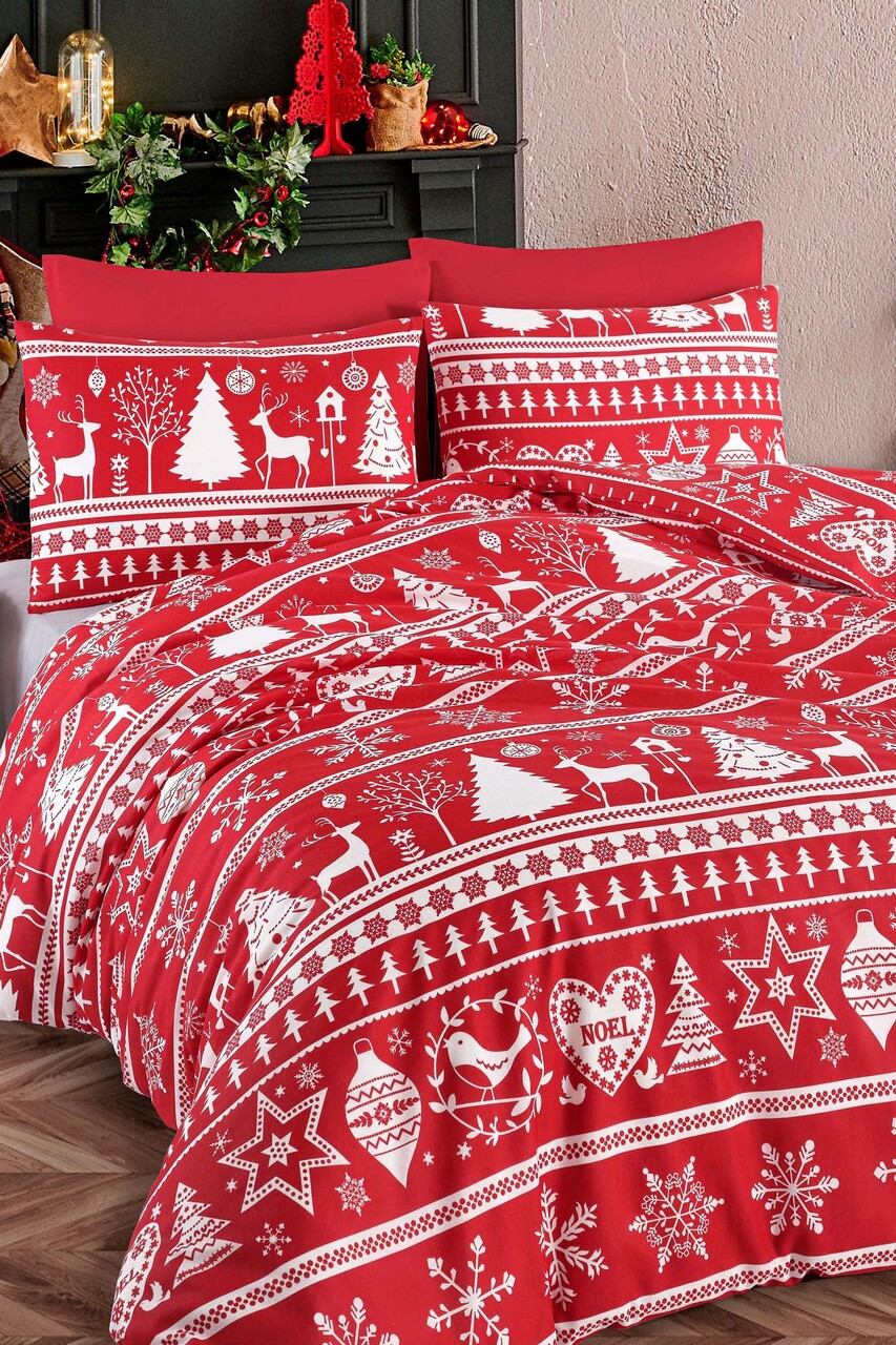Lenjerie de pat pentru o persoana (FR), 2 piese, L'essentiel Maison, Snowmas, Roșu Claret / Alb