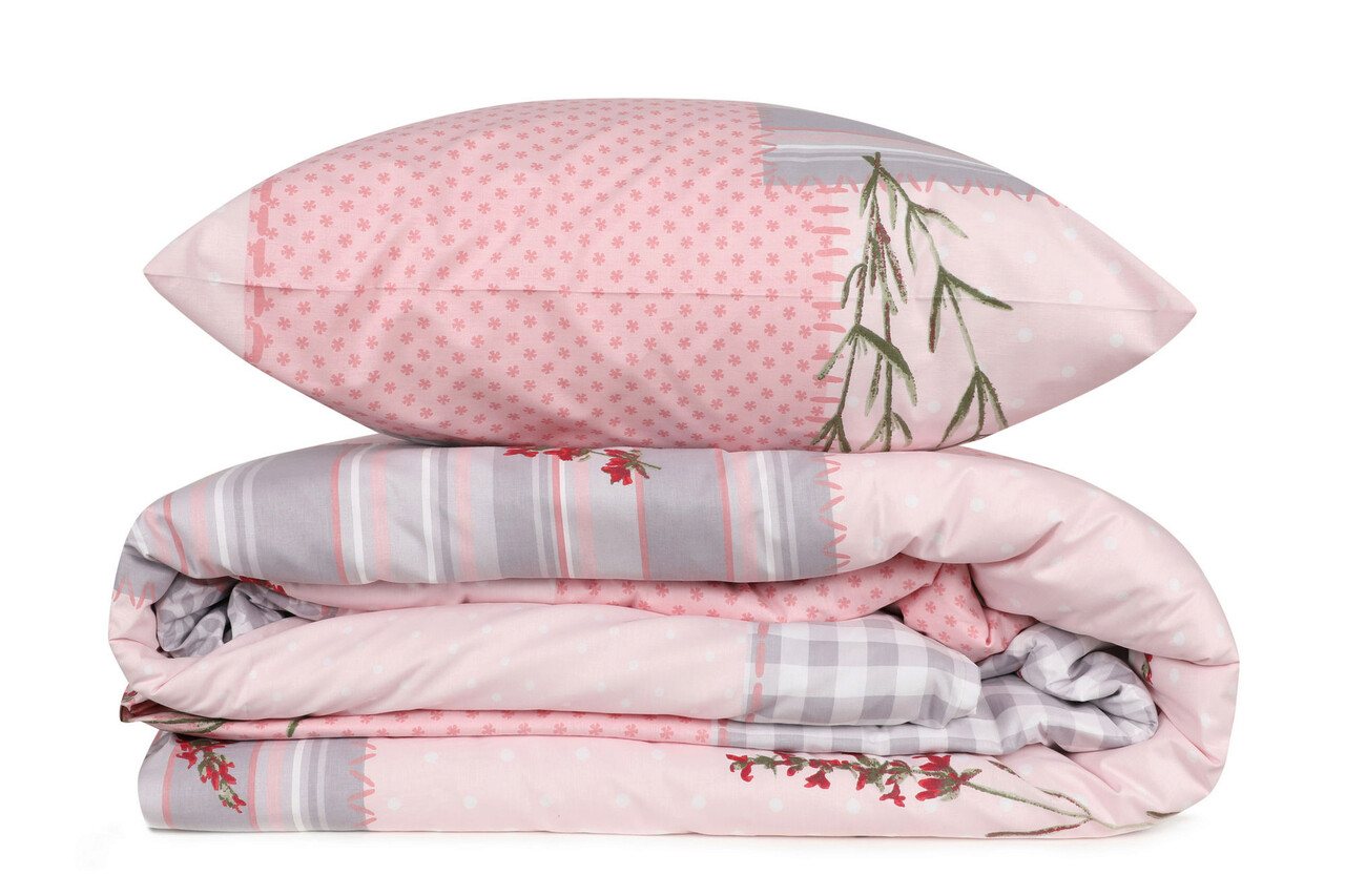 Lenjerie de pat pentru o persoana (FR), Burçak - Powder, Victoria, Bumbac Ranforce