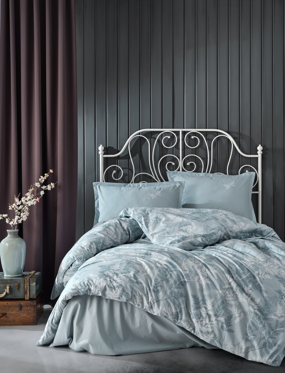Lenjerie de pat pentru o persoana (FR), L'essentiel Maison, Natur v1, Bumbac Ranforce, Turcoaz