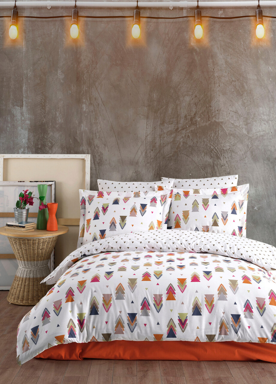 Lenjerie de pat pentru o persoana (FR), L'essentiel Maison, Poly Young, Alb / Portocaliu / Albastru închis / Verde / Roz