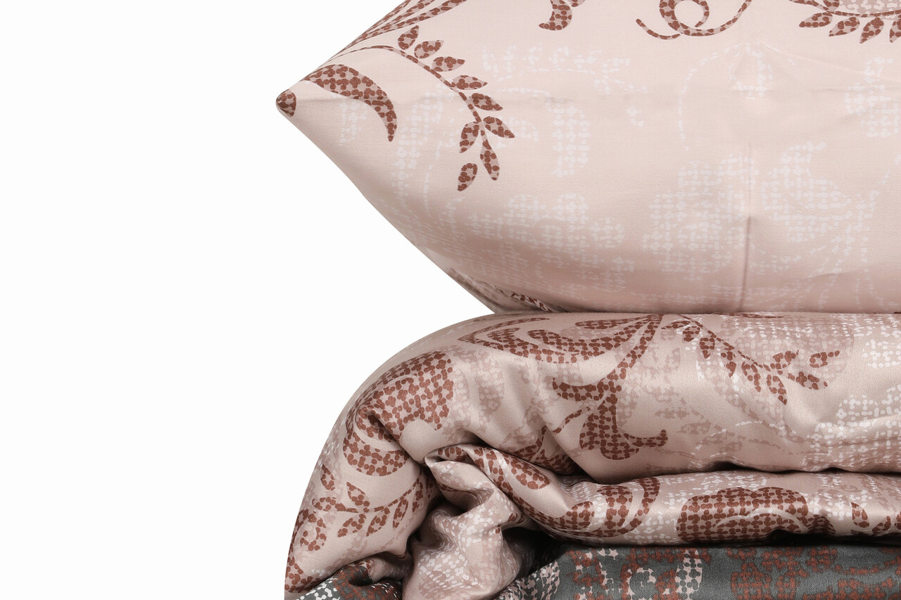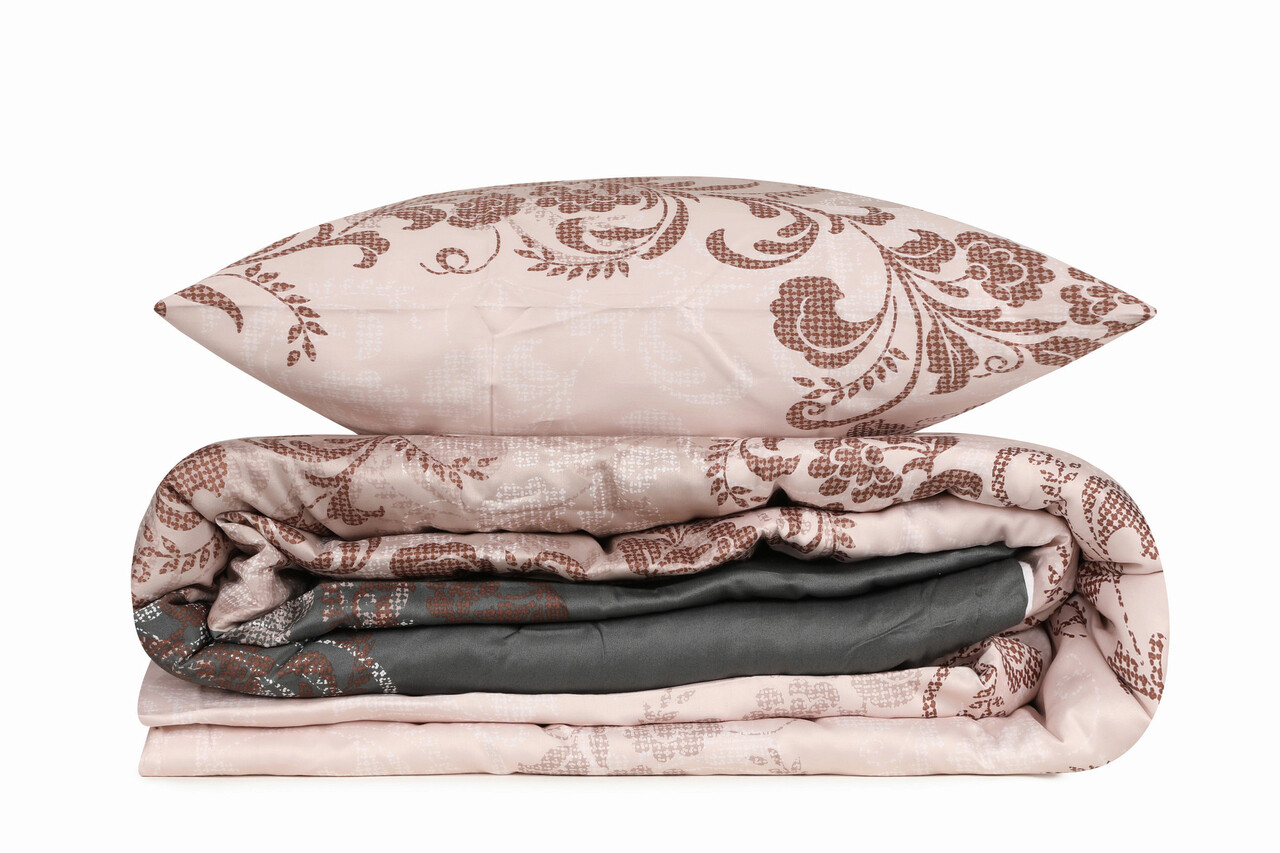 Lenjerie de pat pentru o persoana (FR), L'essentiel Maison, Rina, Maro / Alb / Crem / Turcoaz