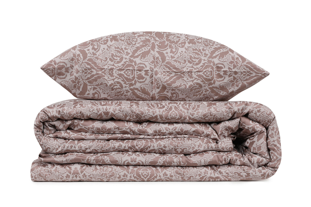 Lenjerie de pat pentru o persoana (FR), L'essentiel Maison, Saten, Maro/Alb
