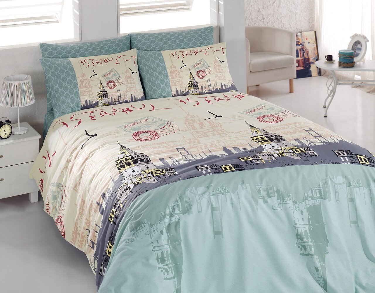 Lenjerie de pat pentru o persoana Galata v2, Majoli Home Collection, 3 piese, 160x240 cm, bumbac ranforce, multicolor
