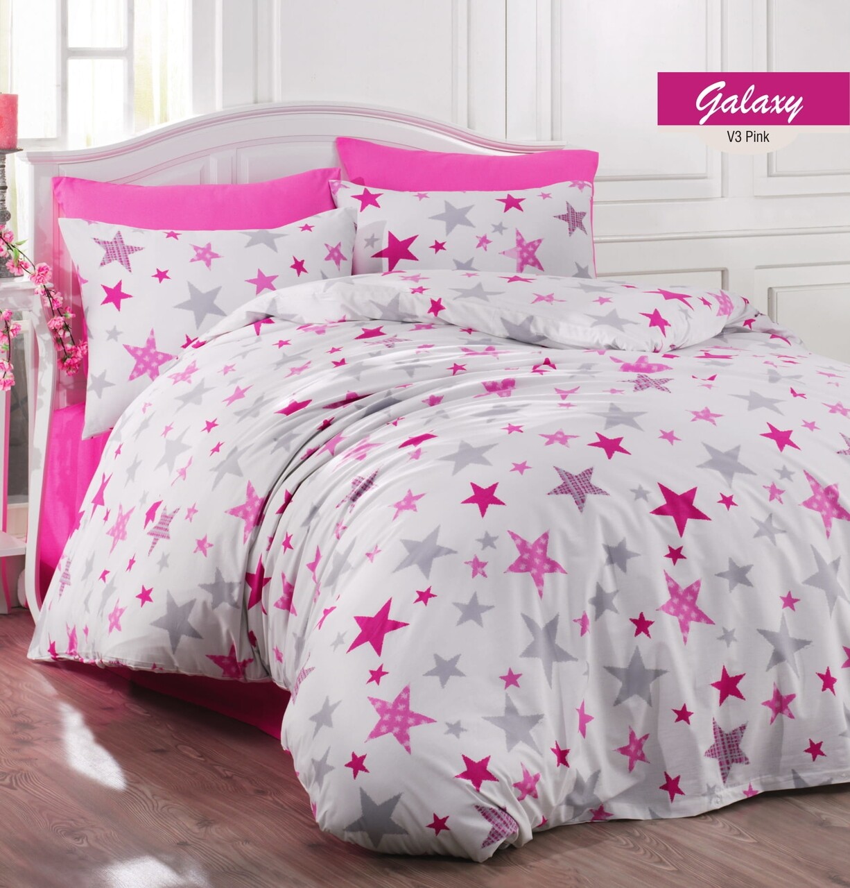 Lenjerie de pat pentru o persoana Galaxy, Majoli Home Collection, 3 piese, 160x240 cm, 100% bumbac ranforce, multicolor