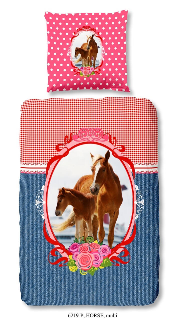 Lenjerie de pat pentru o persoana, Good Morning, Horse, 100% bumbac, 2 piese, multicolor