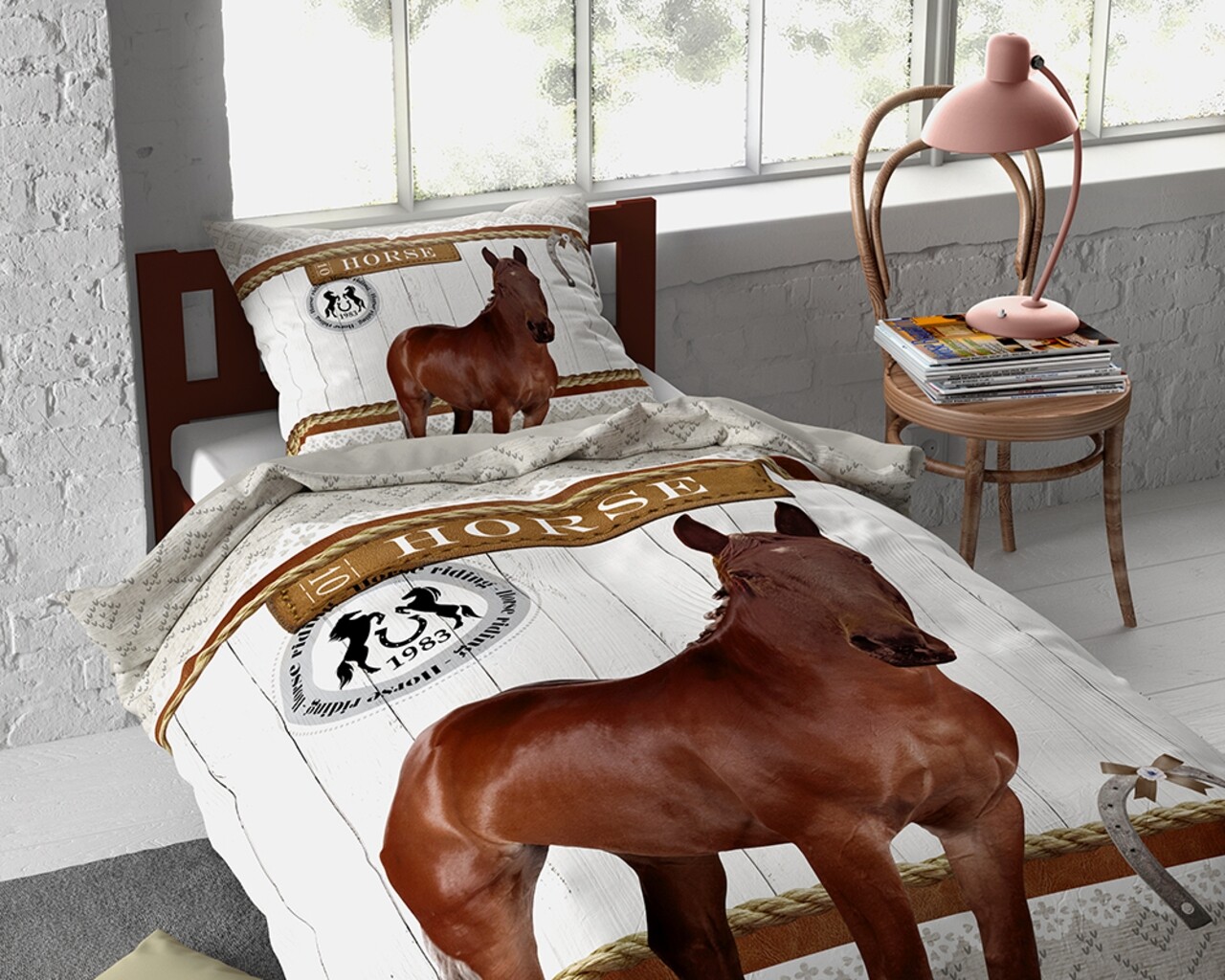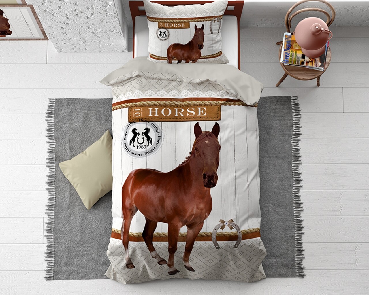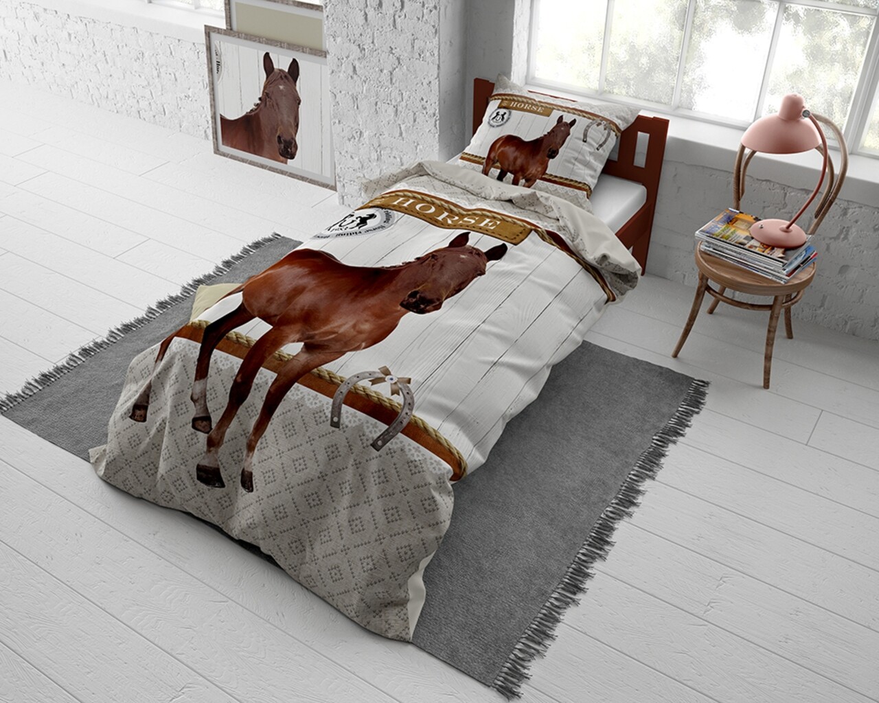 Lenjerie de pat pentru o persoana, Horse Riding Brown, Dreamhouse, 2 piese, 200x220 cm, bumbac, maro