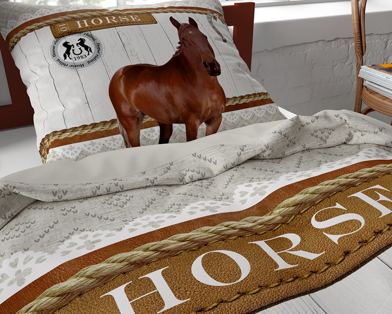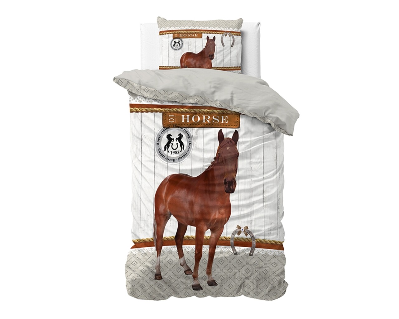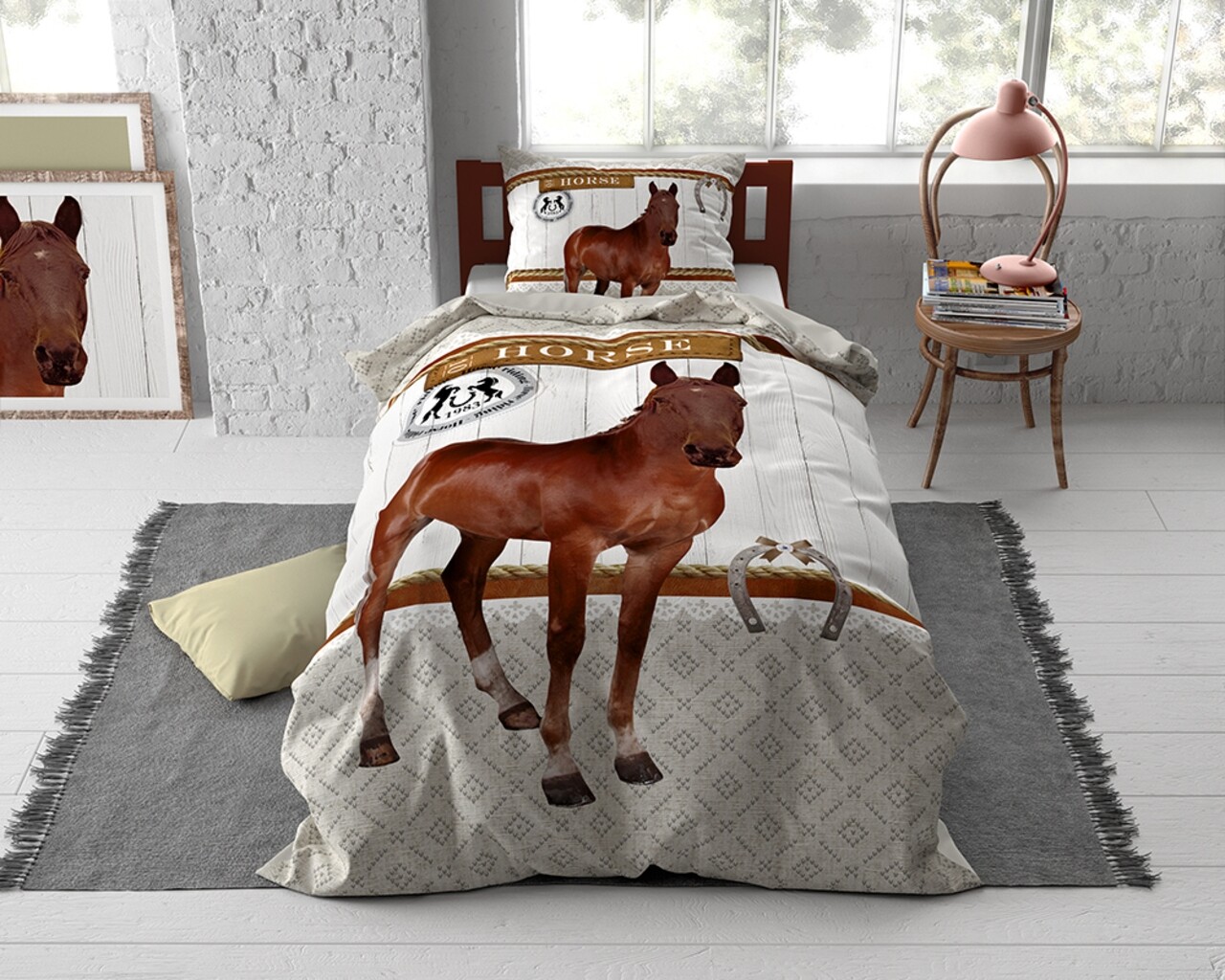 Lenjerie de pat pentru o persoana, Horse Riding Brown, Dreamhouse, 2 piese, 200x220 cm, bumbac, maro