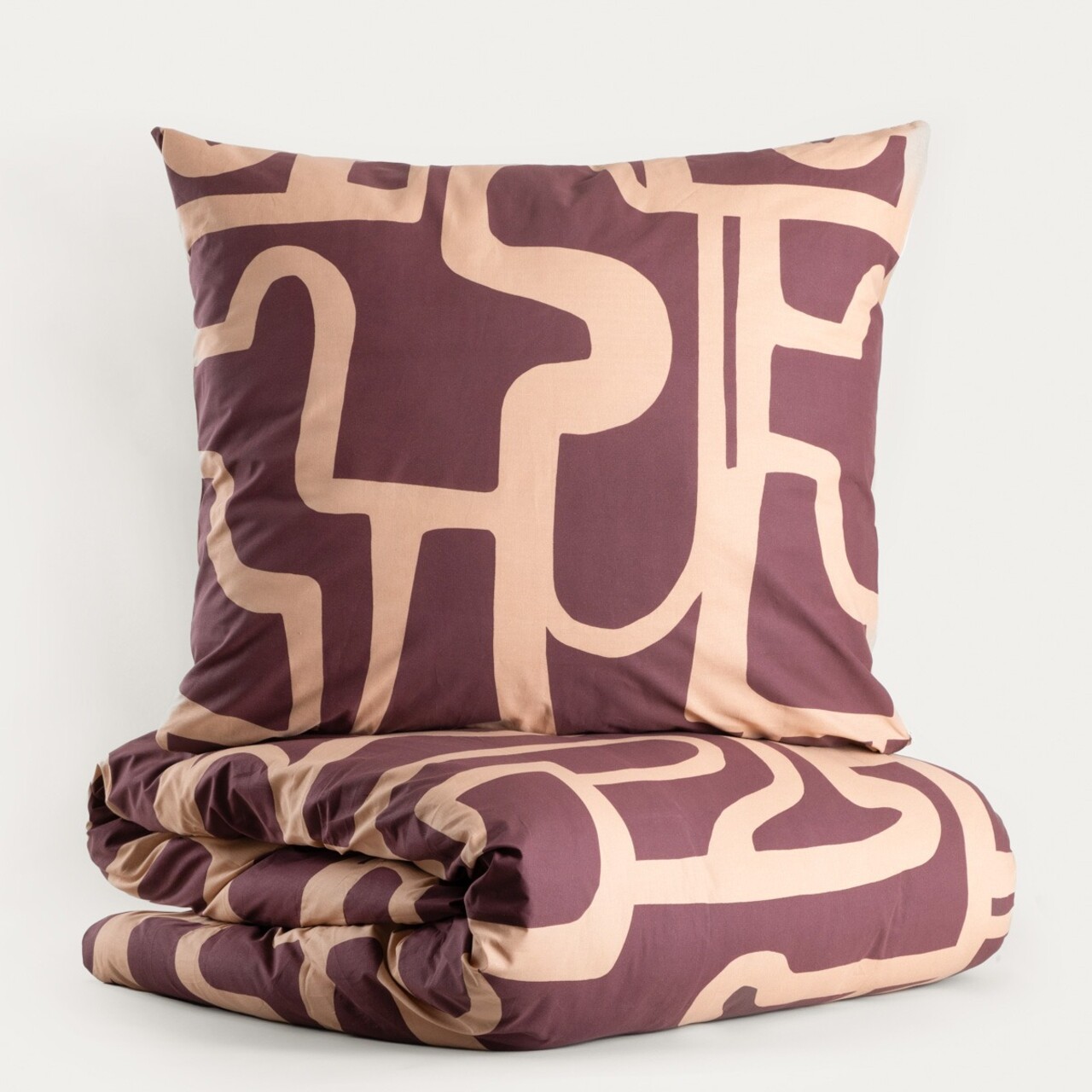 Lenjerie de pat pentru o persoana Karmen, Homla, 2 piese, 140x200 cm, bumbac, visiniu/bej