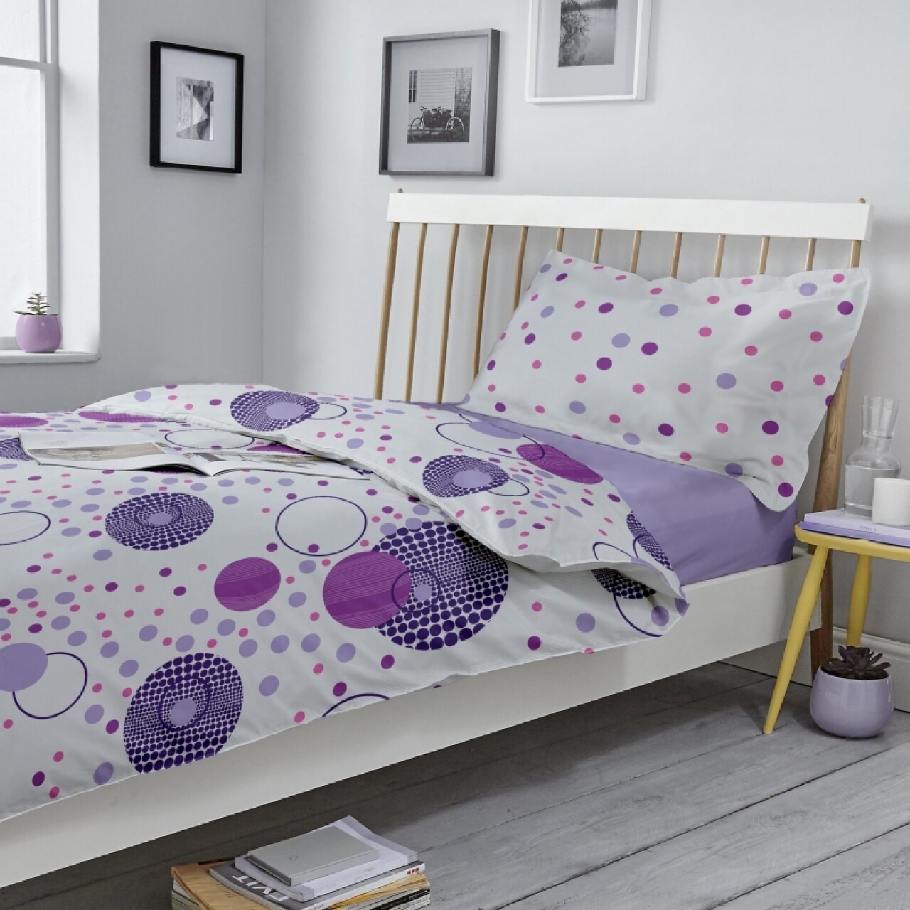 Lenjerie de pat pentru o persoana, Kinetics V.1, 3 piese, 160 x 220 cm, 100% bumbac ranforce, alb/mov