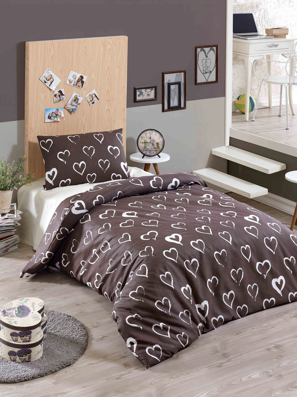 Lenjerie de pat pentru o persoana, L'essentiel Maison, Amaour, 65% bumbac/35% poliester, Maro/Alb