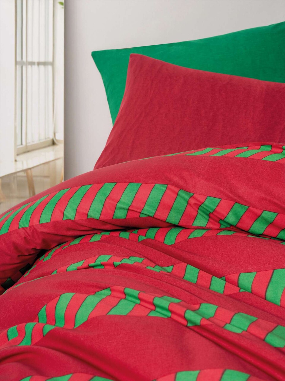 Lenjerie de pat pentru o persoana, L'essentiel Maison, Holly, Bumbac Ranforce, Verde/Roșu