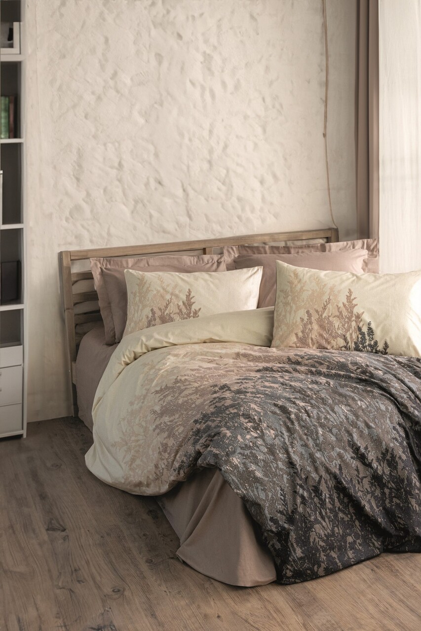 Lenjerie de pat pentru o persoana, L'essentiel Maison, Lindon, Bumbac Ranforce, Bej