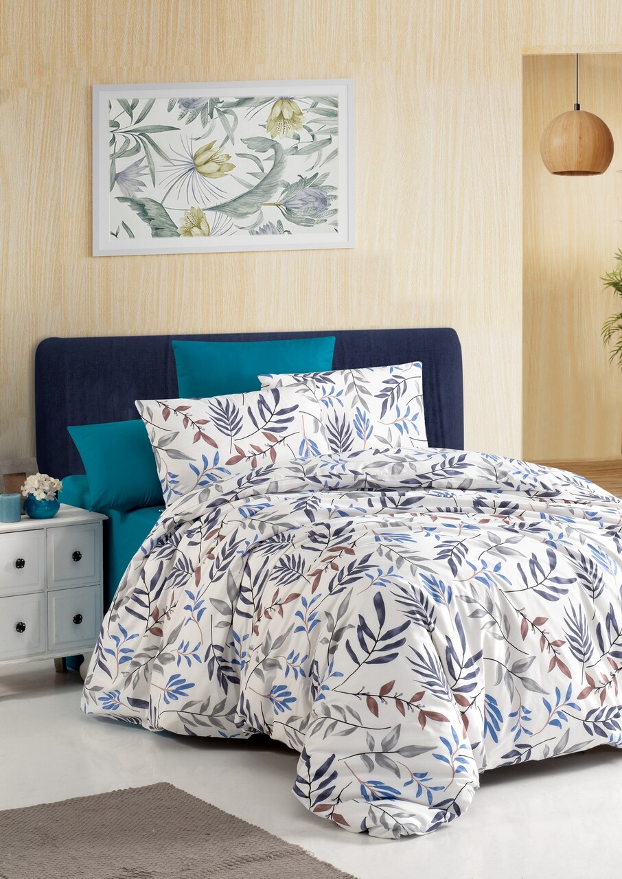 Lenjerie de pat pentru o persoana, L'essentiel Maison, Hana, Alb / Albastru / Albastru închis / Gri