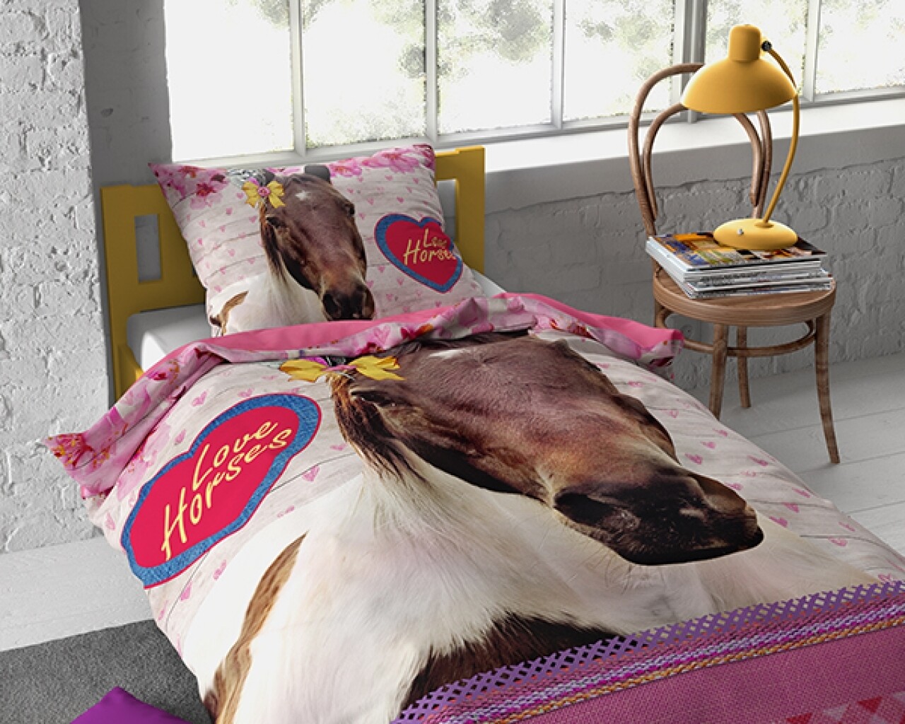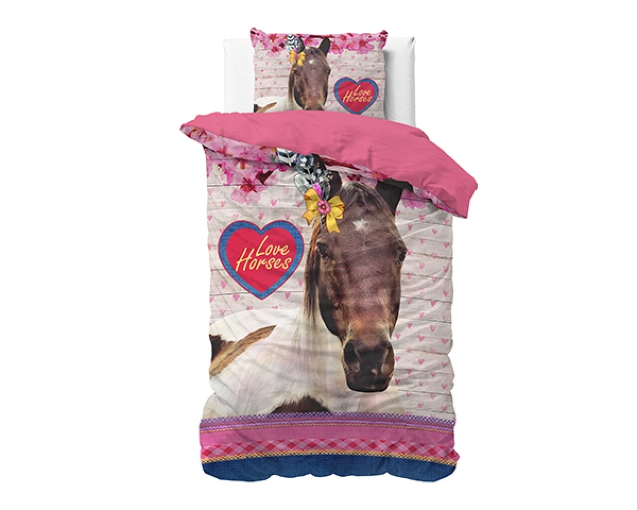 Lenjerie de pat pentru o persoana, Love Horse Pink, Dreamhouse, 2 piese, 100% bumbac, multicolora