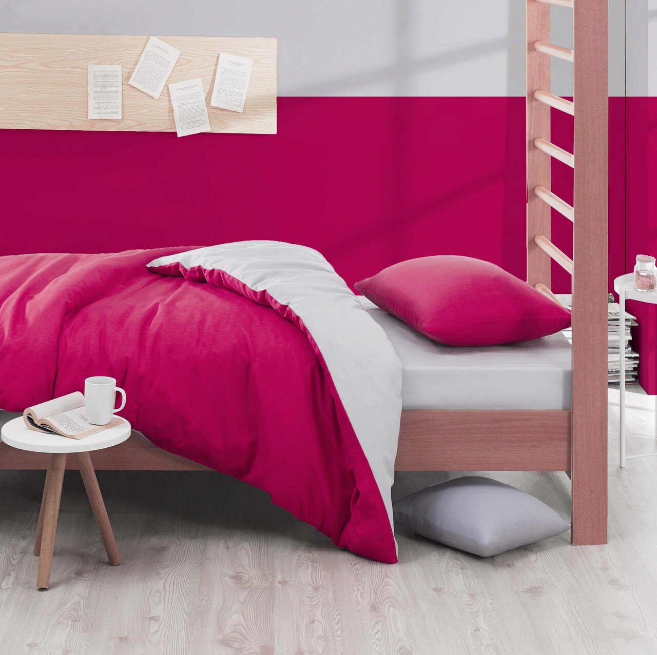 Lenjerie de pat pentru o persoana, Mix - Fuchsia, Light Grey, Acasă EnLora, 65% bumbac/35% poliester