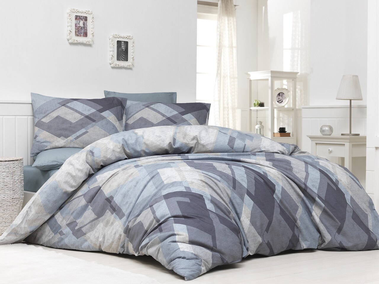 Lenjerie de pat pentru o persoana Mosaic v5, Majoli Home Collection, 3 piese, 160x240 cm, bumbac ranforce, multicolor