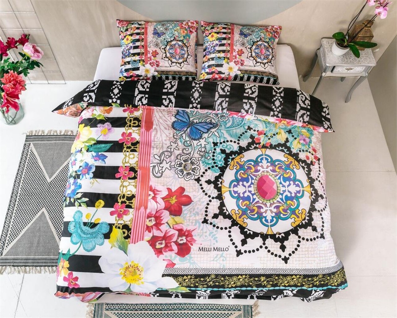 Lenjerie de pat pentru o persoana, Nadine White, Melli Mello, 2 piese, 100% bumbac satinat, multicolora