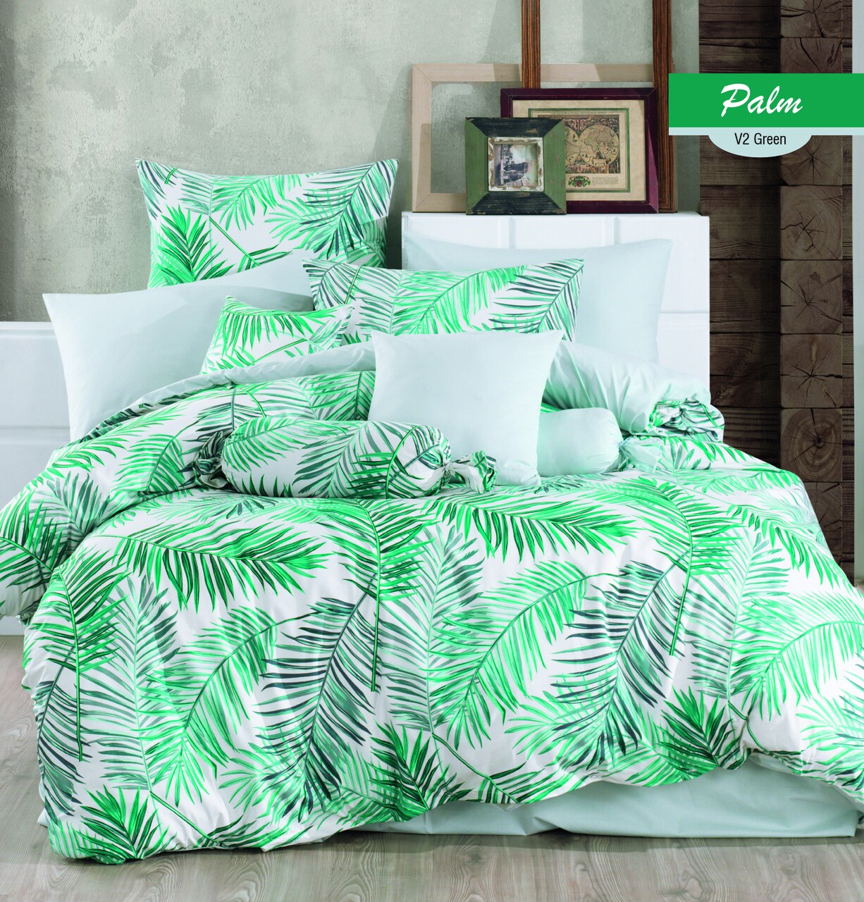 Lenjerie de pat pentru o persoana Palms Green, Majoli Home Collection, 3 piese, 160x240 cm, bumbac ranforce, verde