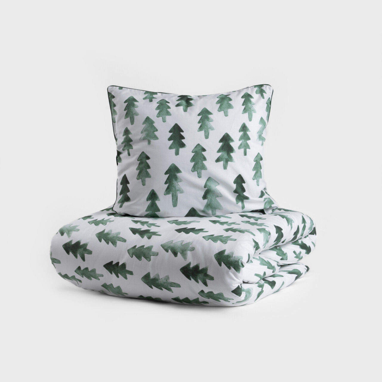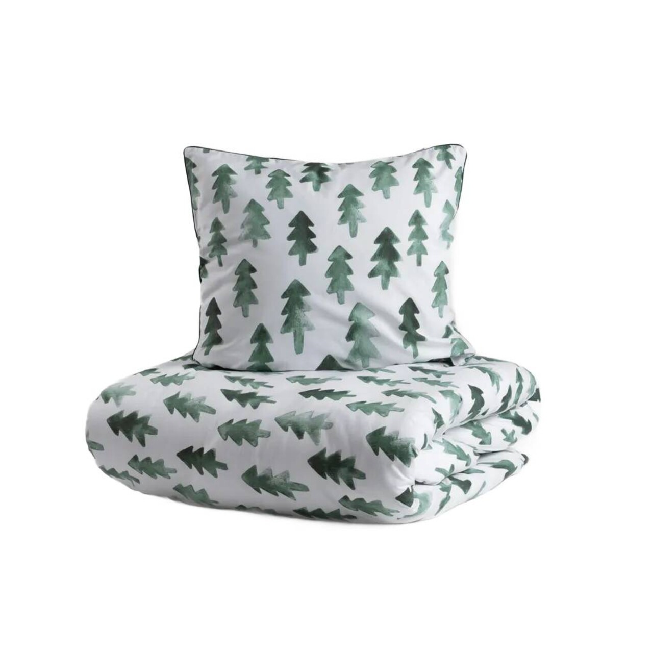 Lenjerie de pat pentru o persoana Pinno, Homla, 2 piese, 140x200 cm, bumbac, alb/verde
