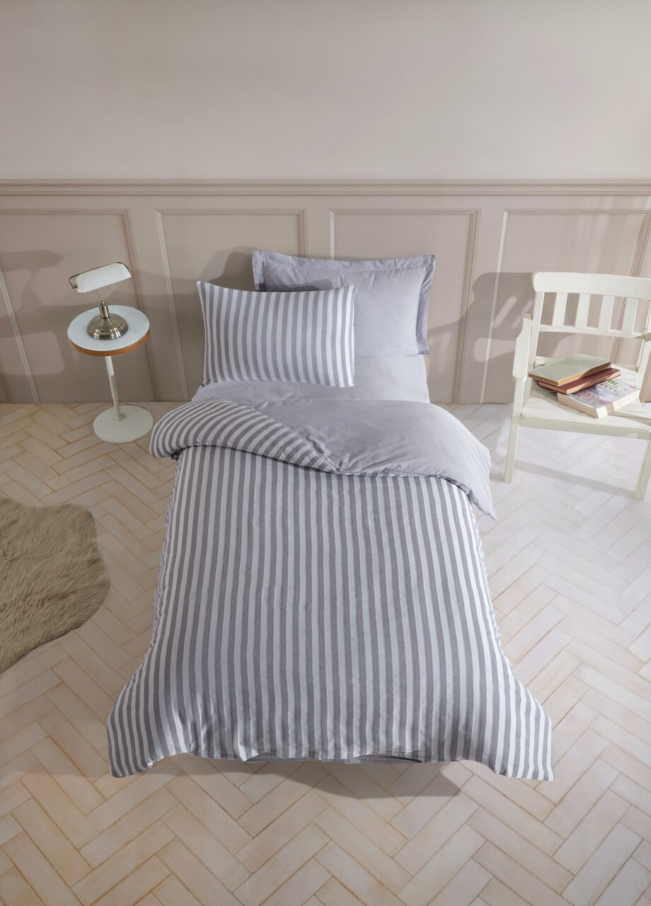 Lenjerie de pat pentru o persoana, Road Potlu - Light Grey, EnLora Home, Bumbac;Poliester