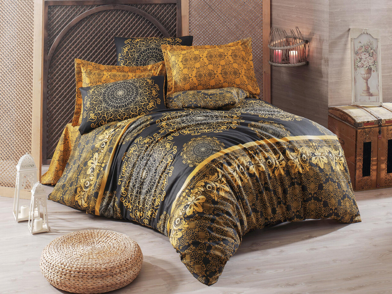 Lenjerie de pat pentru o persoana, Şehri-Ala - Gold, Eponj Home, 65% bumbac/35% poliester