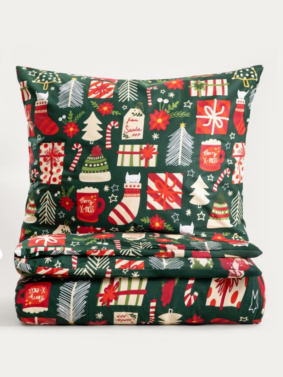 Creati o atmosfera unica in dormitorul dumneavoastra cu lenjeria de pat SENTE. Cu motive festive aceasta lenjerie de pat aduce spiritul Craciunului direct in dormitor, oferind confort si o atmosfera plina de veselie. Este, de asemenea, o optiune excelenta pentru un cadou practic.