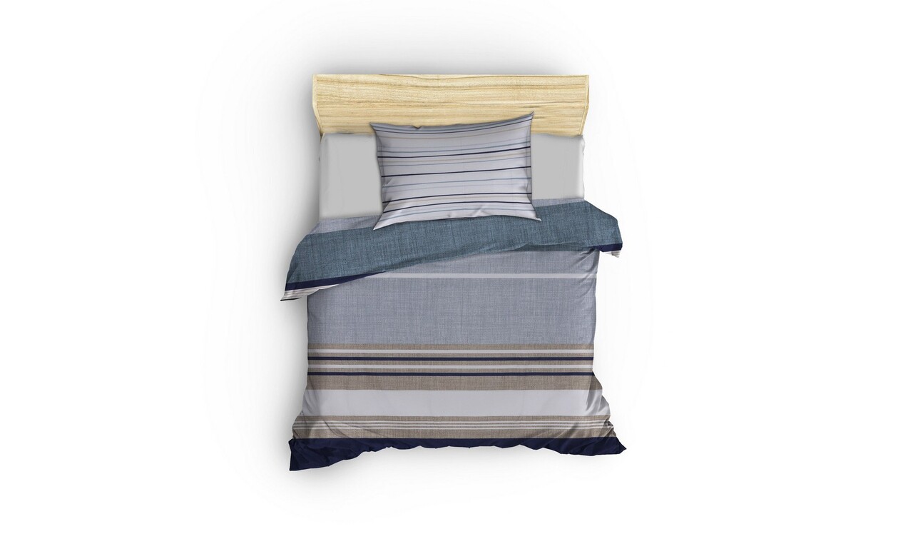 Lenjerie de pat pentru o persoana Single XL (DE), L'essentiel Maison, Savoy, Albastru / Alb / Gri