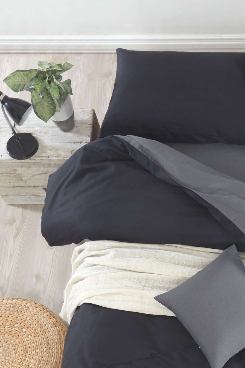 Lenjerie de pat pentru o persoana Single XXL (DE), 2 piese, L'essentiel Maison, Mix, Negru / Fume