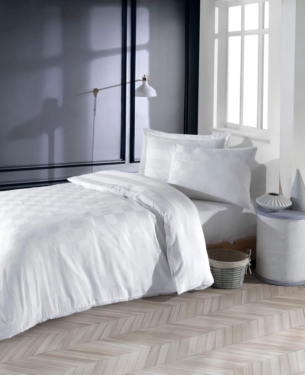 Lenjerie de pat pentru o persoana Single XXL (DE), 2 piese, L'essentiel Maison, Kareli Saten, Alb
