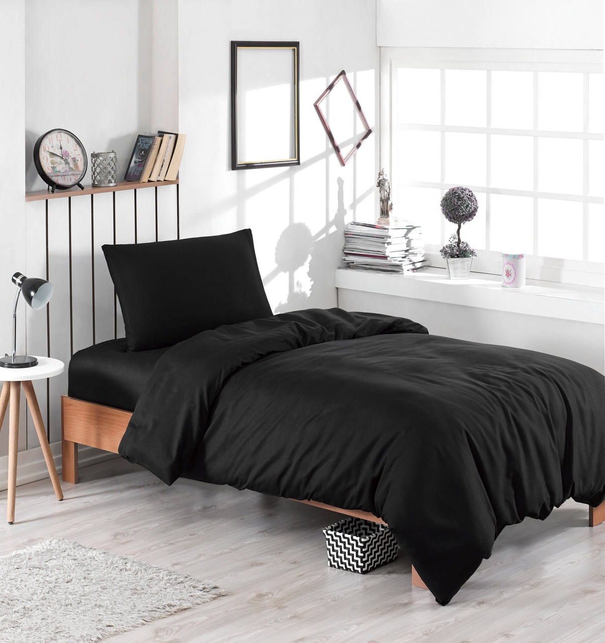 Lenjerie de pat pentru o persoana Single XXL (DE), 2 piese, L'essentiel Maison, Solid, 65% bumbac/35% poliester, Negru
