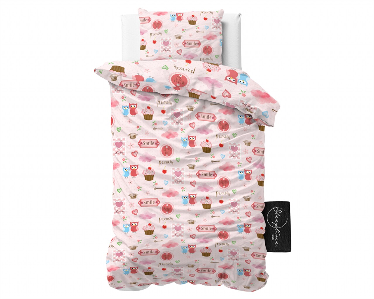Lenjerie de pat pentru o persoana, Small Love Pink, Sleeptime, Royal Textile, 2 piese, 140 x 200 cm, 100% bumbac, multicolor