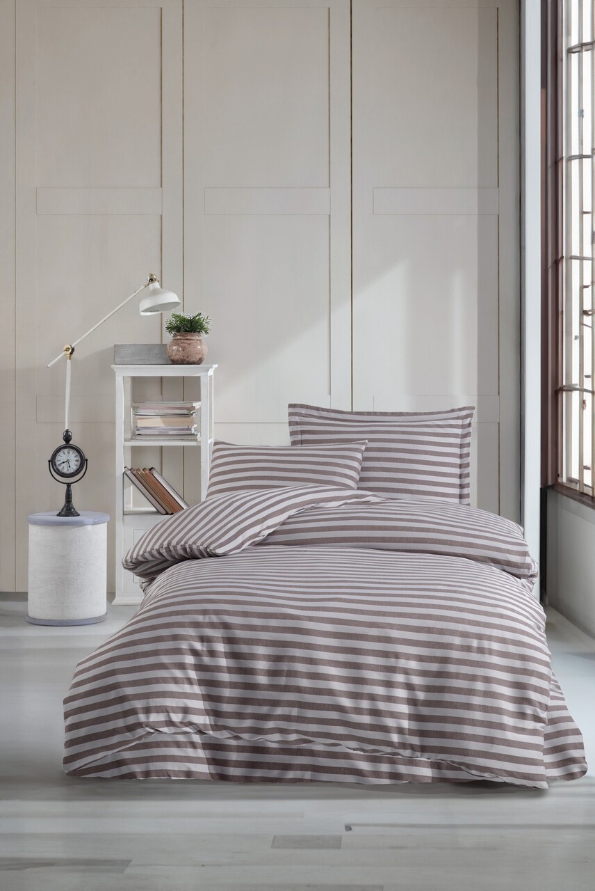 Lenjerie de pat pentru o persoana, Water Yollu Saten - Brown, EnLora Home, Bumbac;Poliester