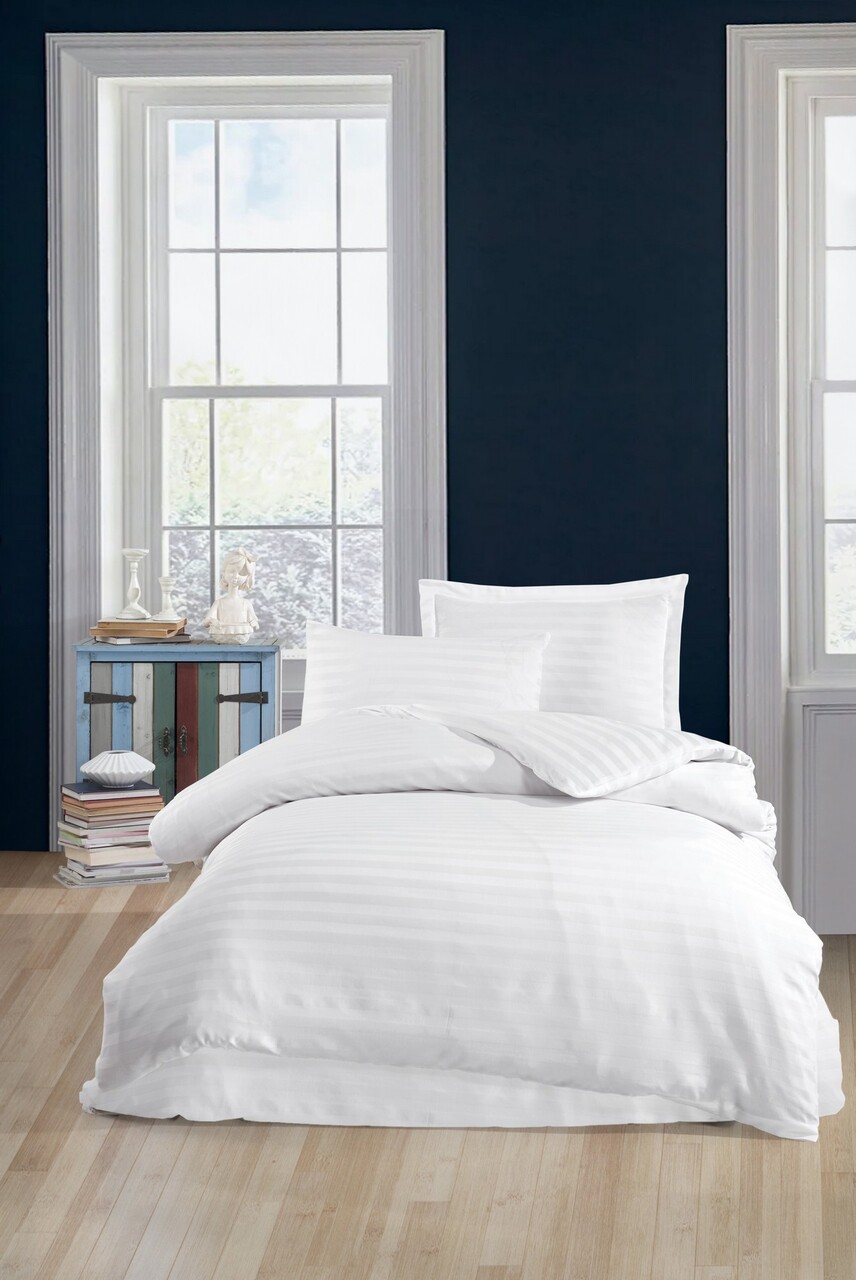 Lenjerie de pat pentru o persoana, Water Yollu Saten - White, EnLora Home, Bumbac;Poliester