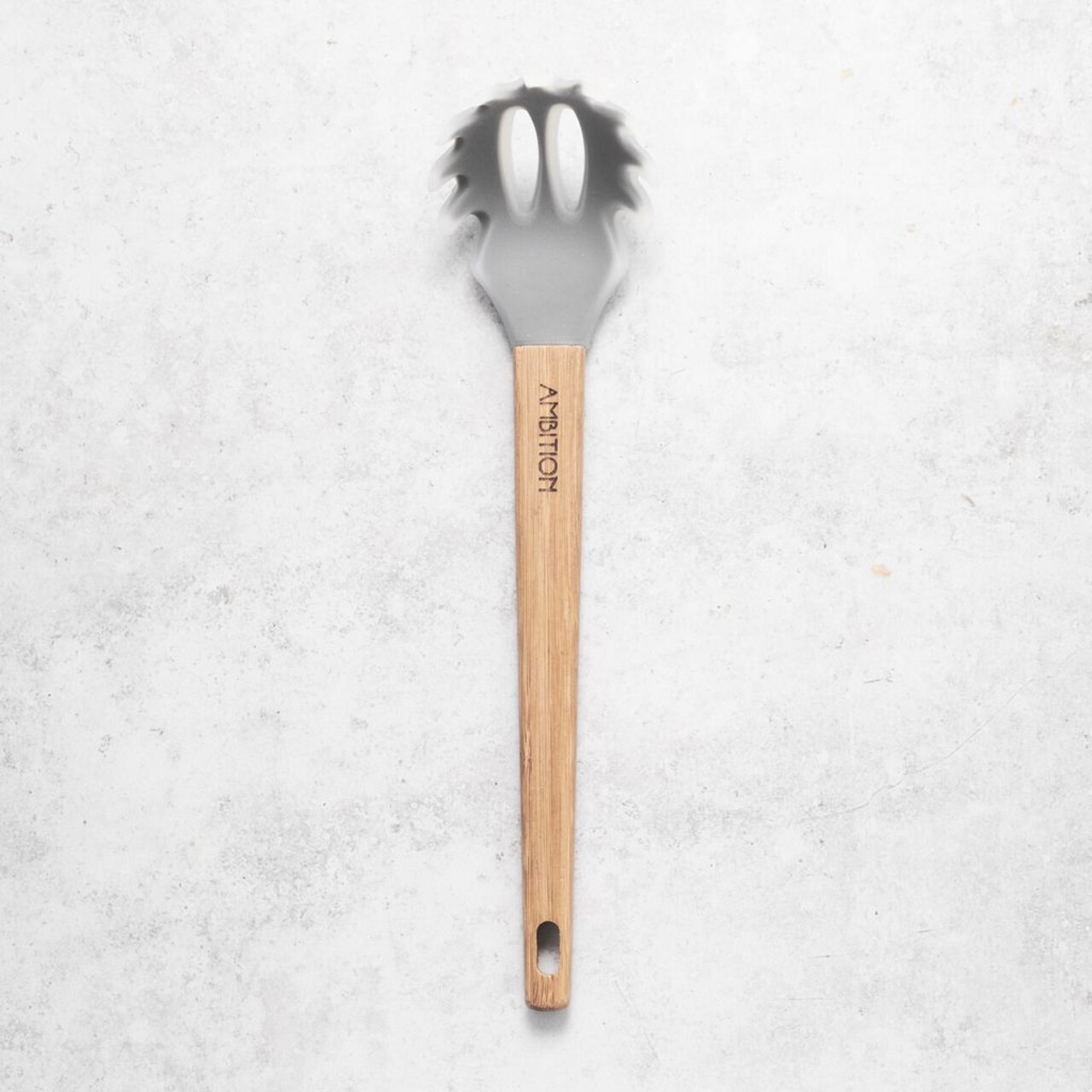 Lingura pentru spaghete, din silicon, cu maner din bambus.