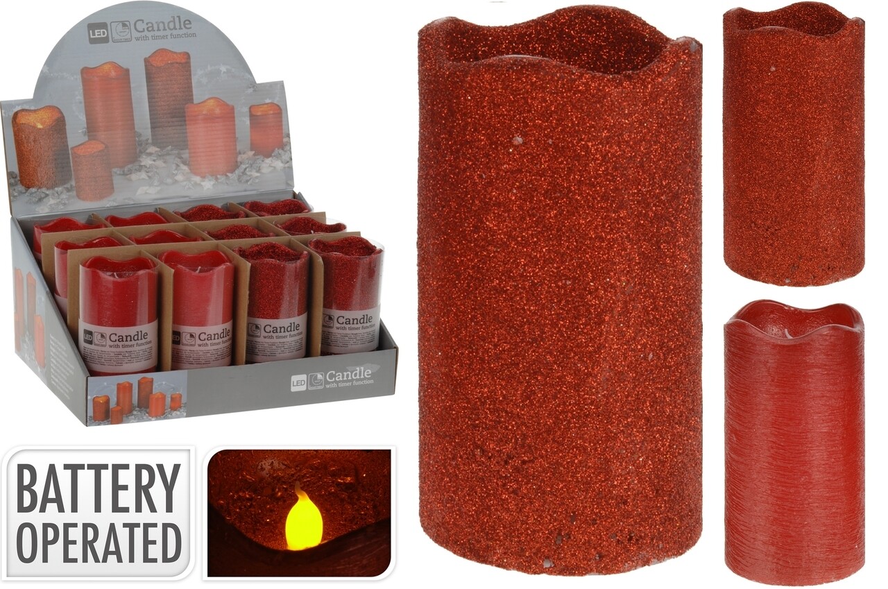 Lumanare Glitter cu LED, 7 x 13 cm, parafina, rosu