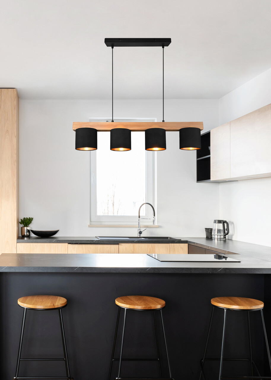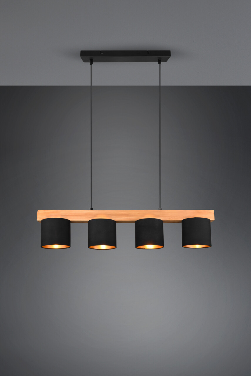 Lustra Cameron, RL, 75x12x150 cm, 28W, 4x E14, lemn, natur/negru