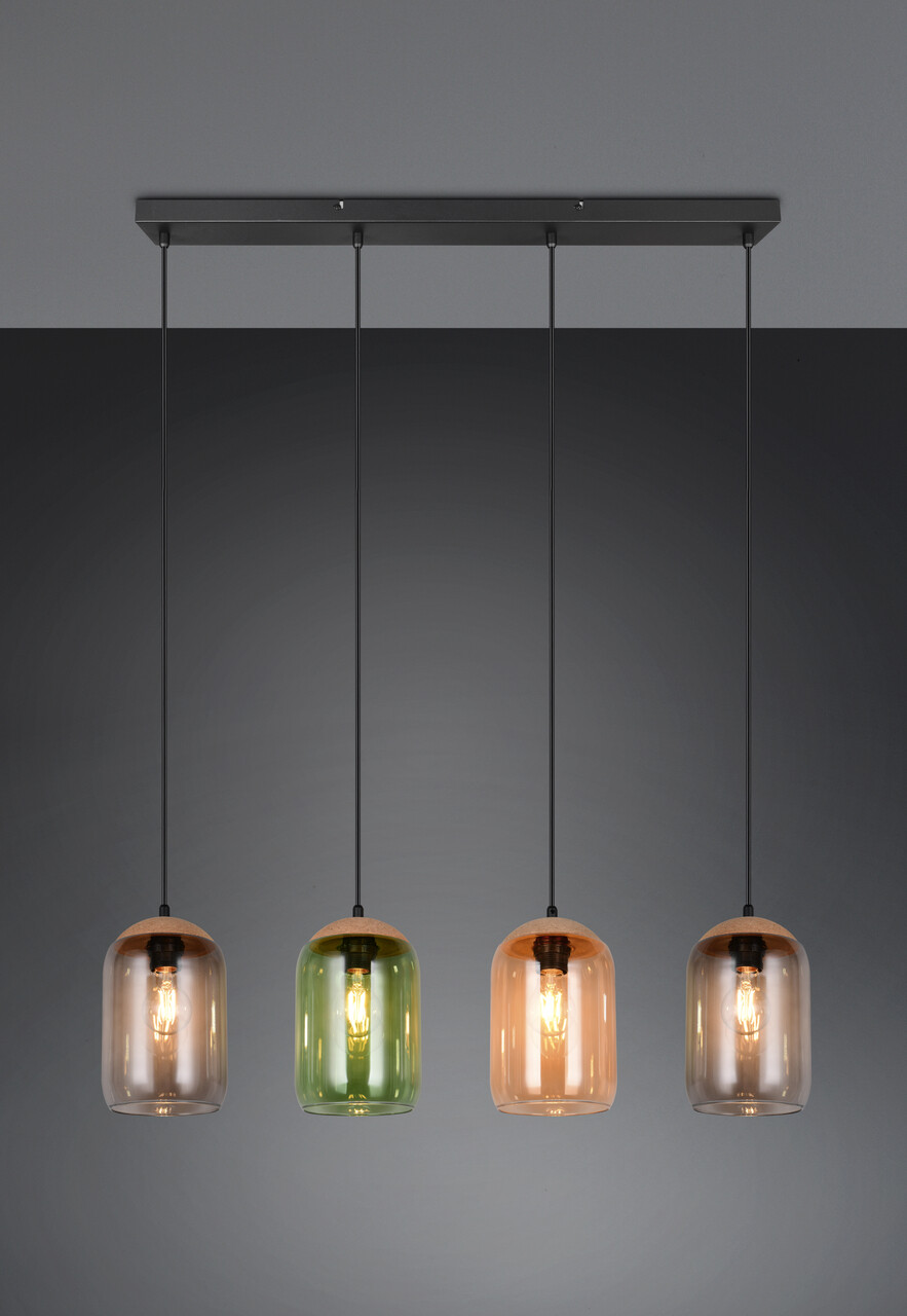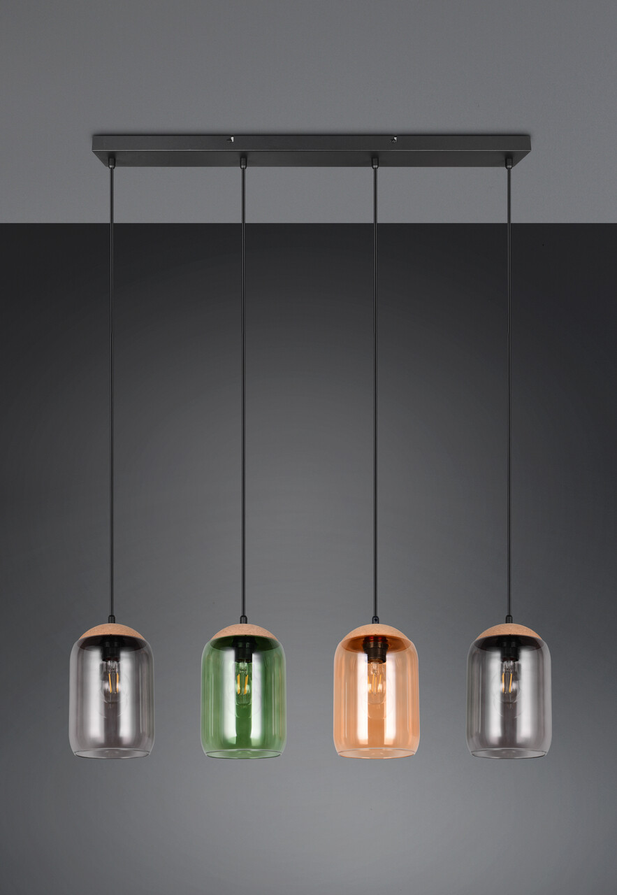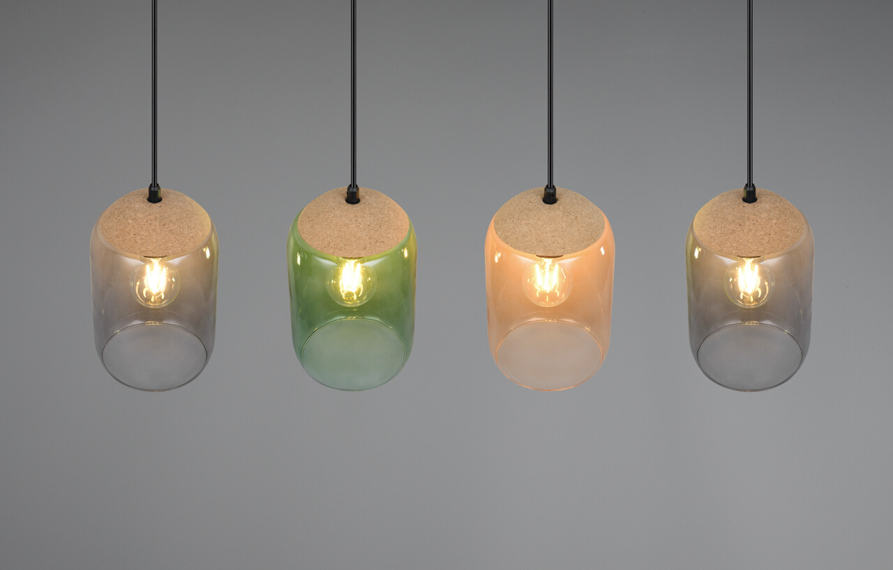 Lustra Cork, TRIO, 90x15x150 cm, 10W, 4x E27, metal/sticla, multicolor