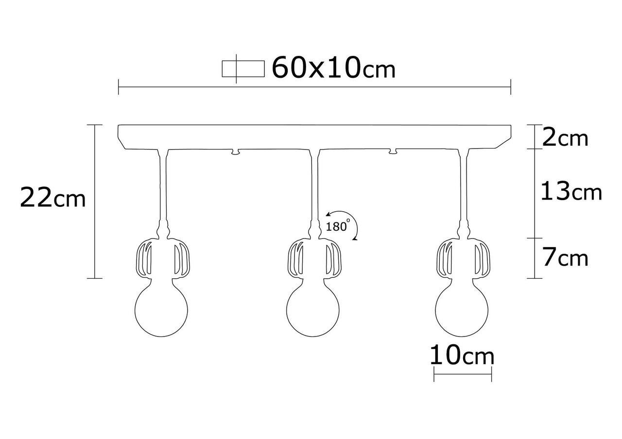 Lustra Demre N-1203, Noor, 22 x 60 cm, 3 x E27, 100W, negru