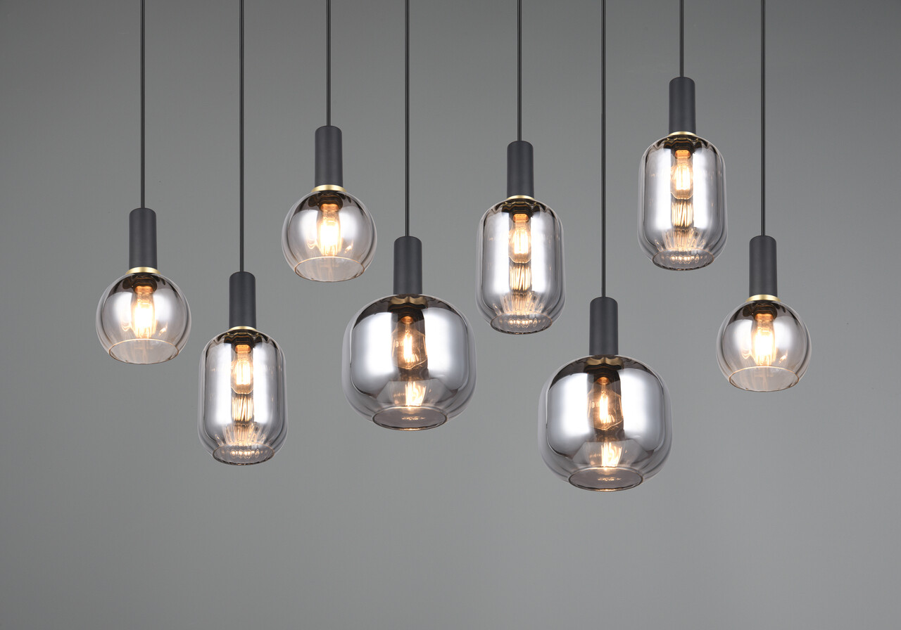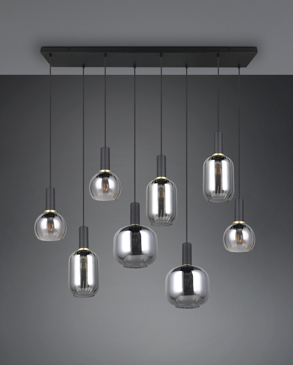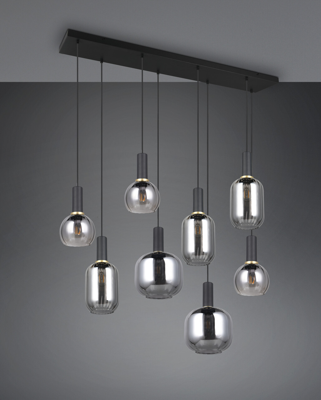 Lustra Diva, TRIO, 115x20x150 cm, 10W, 8x E27, metal, negru mat/argintiu