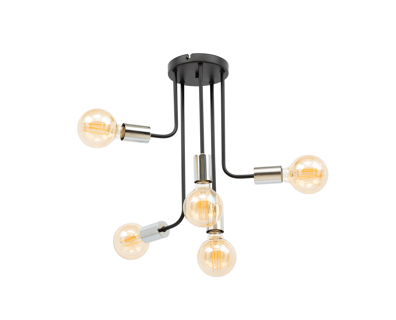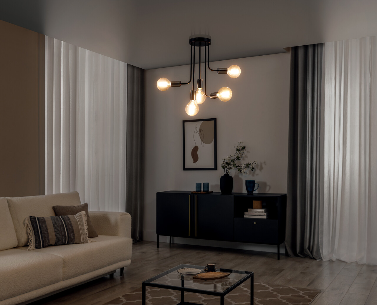 Lustra Indigeo este un element de iluminat unic care aduce eleganta si modernitate interiorului locuintei dumneavoastra. Dimensiunile sale o fac perfecta pentru o varietate de spatii. Fabricata din otel durabil, lustra prezinta soliditatea manoperei, ceea ce garanteaza nu numai un aspect estetic, ci si durabilitate pe termen lung. Cinci puncte de lumina ofera suficienta lumina pentru a ilumina eficient camera. Fiecare dintre cele trei becuri utilizeaza un filet standard E27, ceea ce faciliteaza accesul la o varietate de becuri. Puterea luminoasa maxima admisa de 15W contribuie la iluminarea eficienta din punct de vedere energetic, oferind in acelasi timp confort si atmosfera. Lustra mentine clasa IP20 care garanteaza protectia impotriva prafului si protectia impotriva atingerii cu degetul, mentinand in acelasi timp fluxul liber de aer si caldura. Culoarea neagra a candelabrului Indigeo ii confera un caracter unic, incadrandu-se atat in interioarele moderne, cat si in cele clasice. Designul sau minimalist il face un decor excelent si o sursa de lumina care concentreaza atentia si imbogateste in continuare amenajarea camerei.