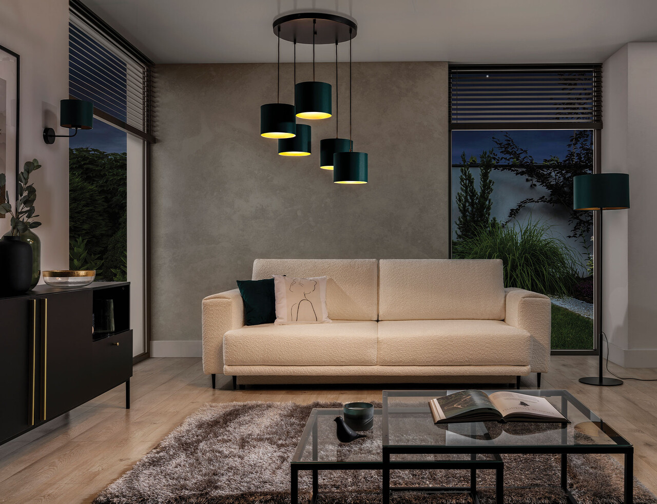 Lustra ELTAP, Vespillo, 58x115 cm, 5xE27, 15W, otel/PVC, verde/auriu