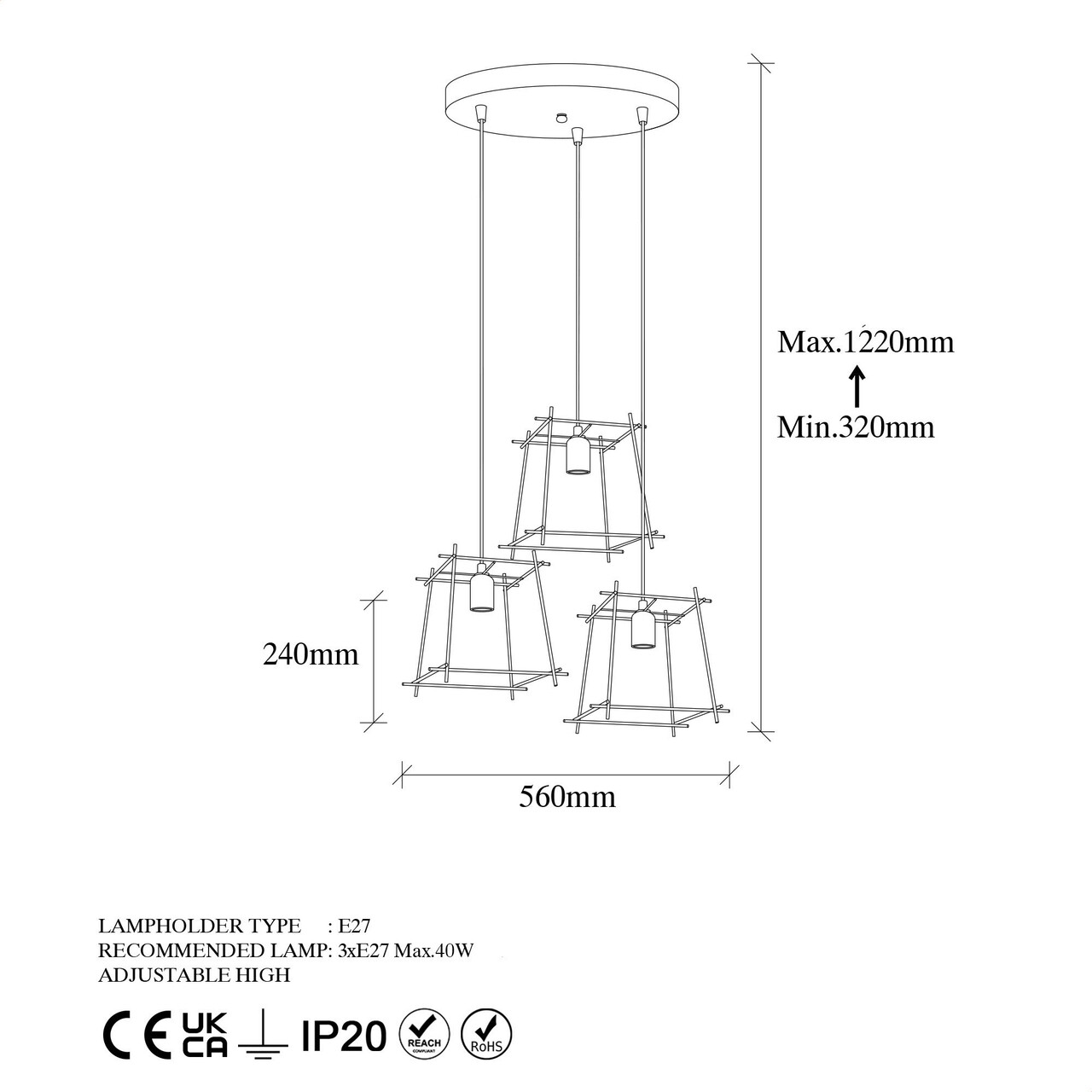 Lustra, Fulgor, 942FLG1184, Metal, Negru/Maro antic