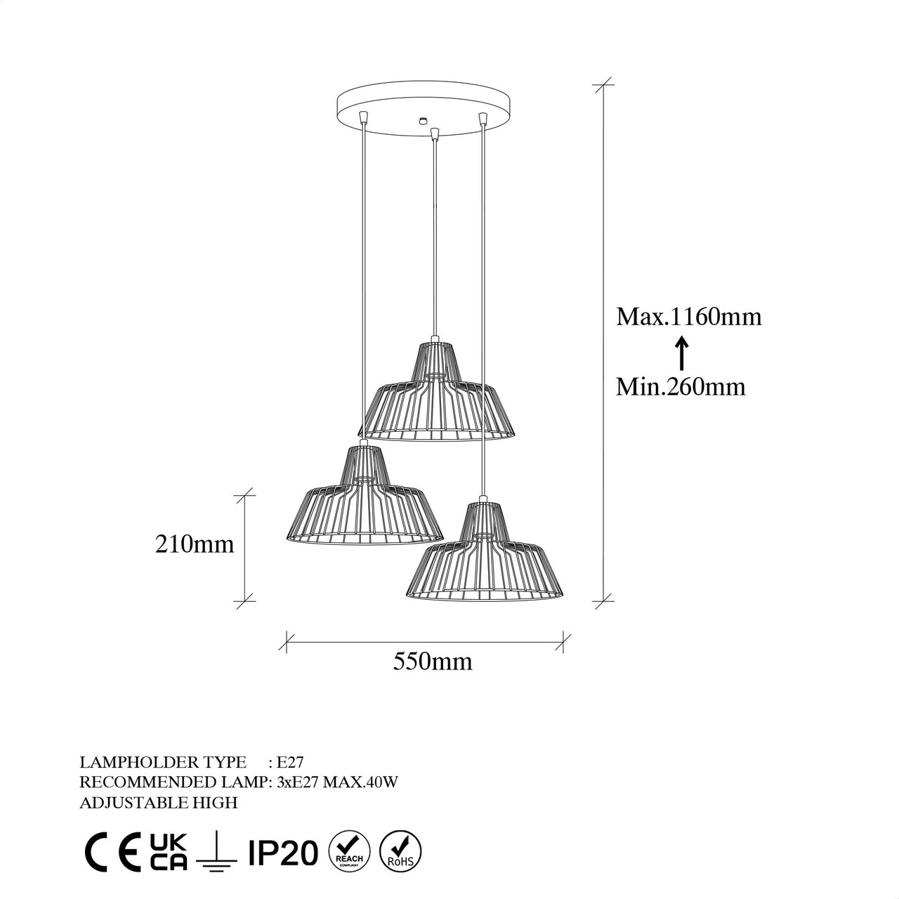Lustra, Fulgor, 942FLG1445, Metal, Negru/Maro antic