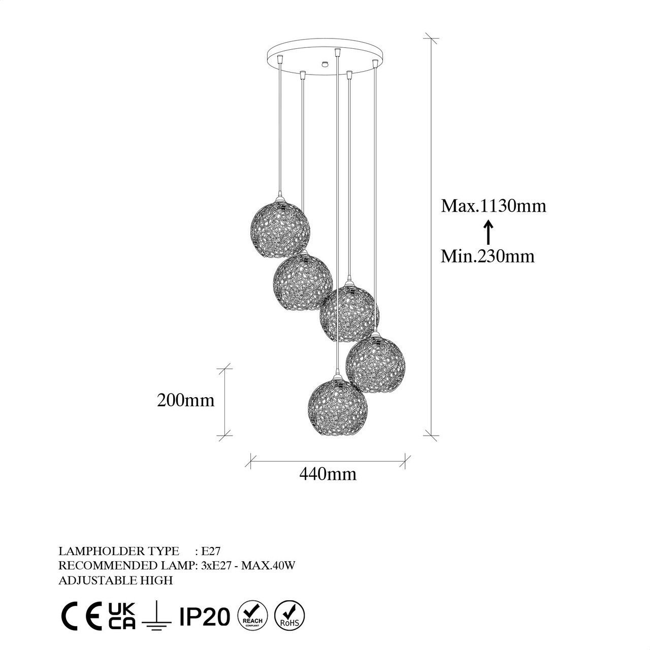 Lustra, Fulgor, 942FLG1453, Metal, Negru