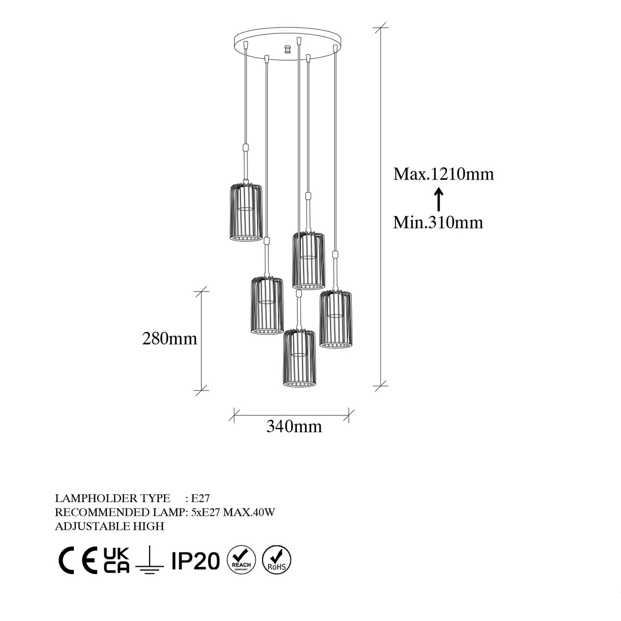 Lustra, Fulgor, 942FLG1456, Metal, Negru/Maro antic